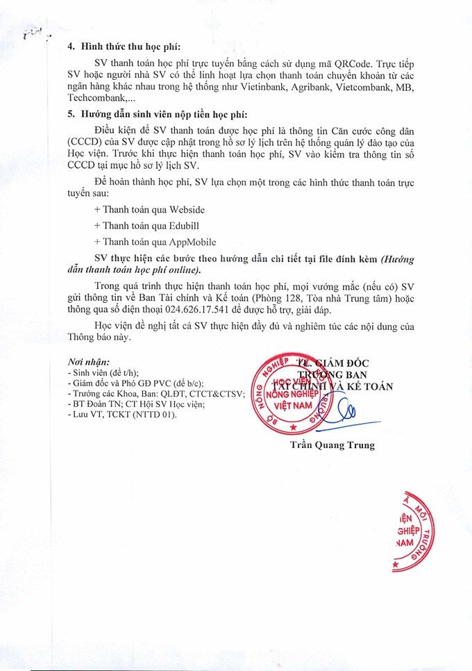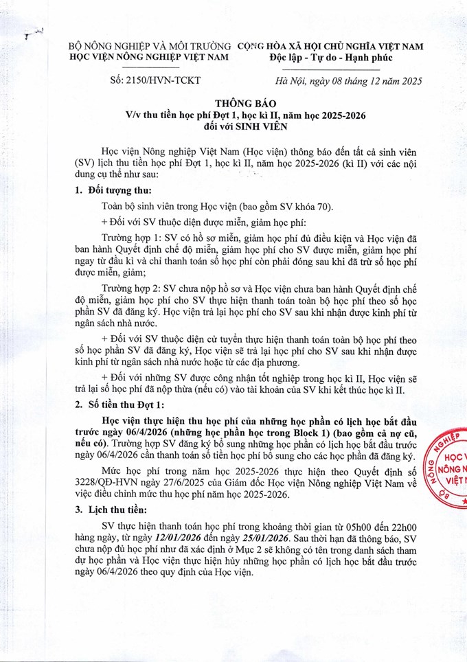 Thu tiền học phí Đợt 1, học kì II, năm học 2025-2026 đối với SINH VIÊN