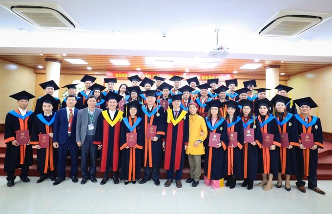 Tân thạc sĩ ngành Quản lý đất đai chụp ảnh lưu niệm cùng các thầy/ cô (tháng 12/2022) |