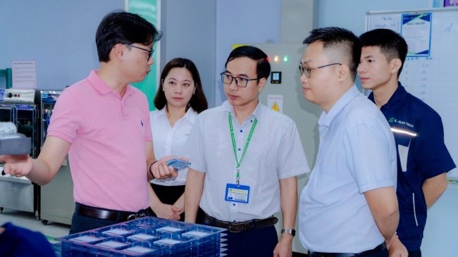 Cũng trong buổi trải nghiệm, thầy cô và các em sinh viên được dẫn đi tham quan tại xưởng sản xuất của công ty. Tại đây, các em được các anh chị cán bộ Công ty giới thiệu về ứng dụng các phần mềm vào sản xuất, dây chuyền sản xuất thiết bị, quy định nghiêm ngặt đối với người lao động trong quá trình sản xuất,…